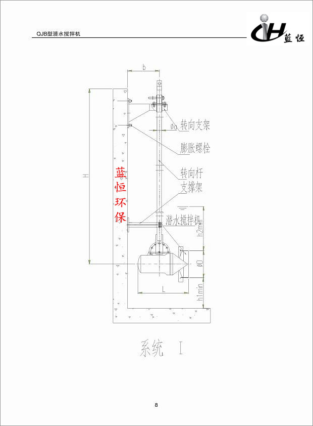 潜水搅拌机必需完全潜入水中工作;不能在易燃易爆或有强腐蚀性液体的环境中工作;钢膨胀螺栓须按要求固定,安装完毕后,必须将电缆拉紧固定好.