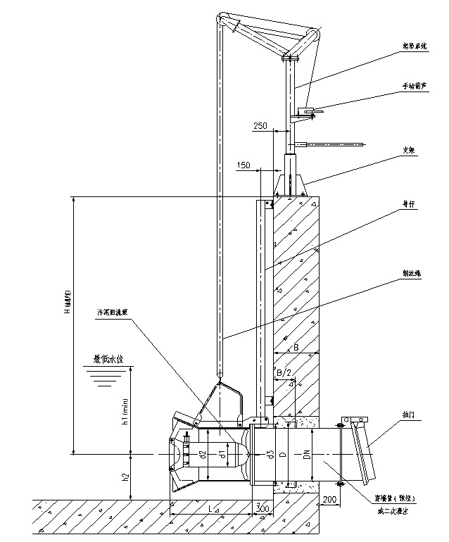 3. 本设备除穿墙管需要预埋外,导杆、起吊架均用钢膨胀螺栓与池体连接,不需要预埋件。